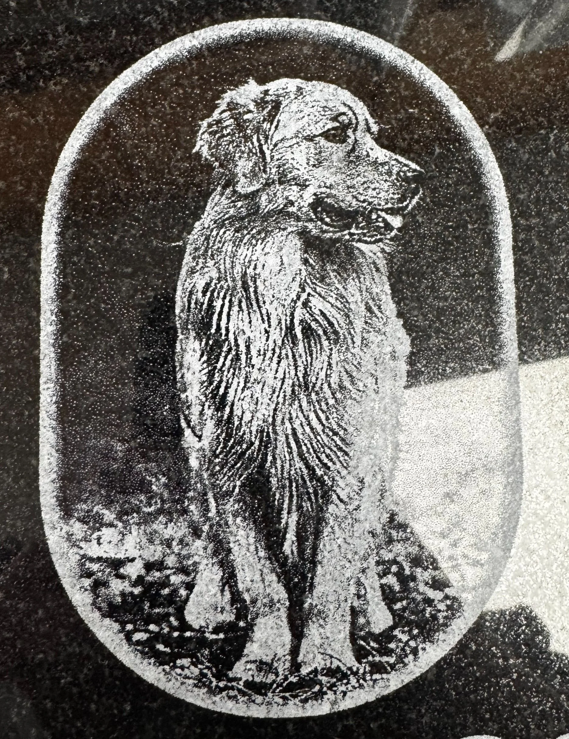 Lazer Etching is a very interesting process, where we take our high-power lazer to create a beautiful design. The difference between lazer etching and sand blasting is we can take a picture and duplicate it down to the smallest detail as shown below. Which sand blasting is more basic and not as much detail.