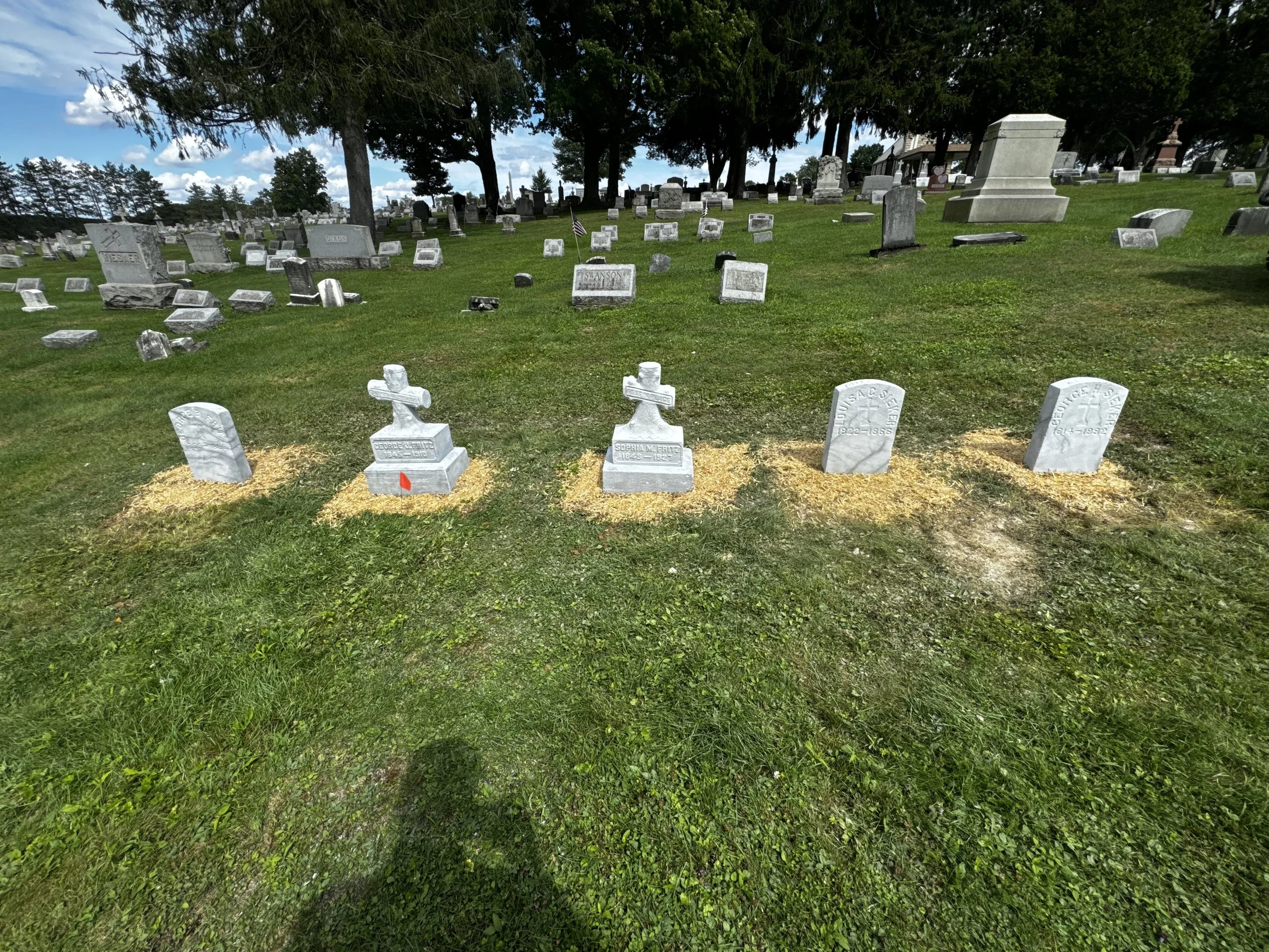 A restoration is usually performed when the headstone is either leaning or has unfortunately fallen over entirely. This issue typically arises due to an incorrect footer installation that fails to provide adequate support. Our meticulous process will begin with the careful removal of the existing headstone, followed by the removal of the inadequate footer. We will then proceed to install a durable new concrete footer that extends three (3) feet deep, ensuring a solid foundation. Once this is completed, we will reset the headstone securely on the newly poured concrete footer. Once all of these steps have been finished, the stone will look as good as new, standing perfectly upright with no lean, and you will no longer have to worry about it potentially falling over ever again.